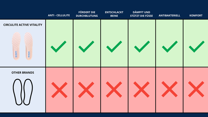 Seit ich die Einlegesohle trage, wirkt meine Cellulite weniger sichtbar. Die Beine fühlen sich entstaut und leichter an vor allem abends.